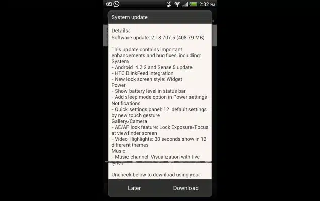 Although the company hasn’t disclosed any exact changelog for the update, the update notification on the HTC One X+ shows modifications and bug fixes, which comprise of the HTC BlinkFeed integration, better battery life with the new sleep mode switch, quick settings panel accessible by two-finger swipe down, lock screen widgets, certain camera improvements, as well as the video highlights feature allowing users to opt from twelve different kinds of music themes and styles, and make a quick and easy 30-seconds video.