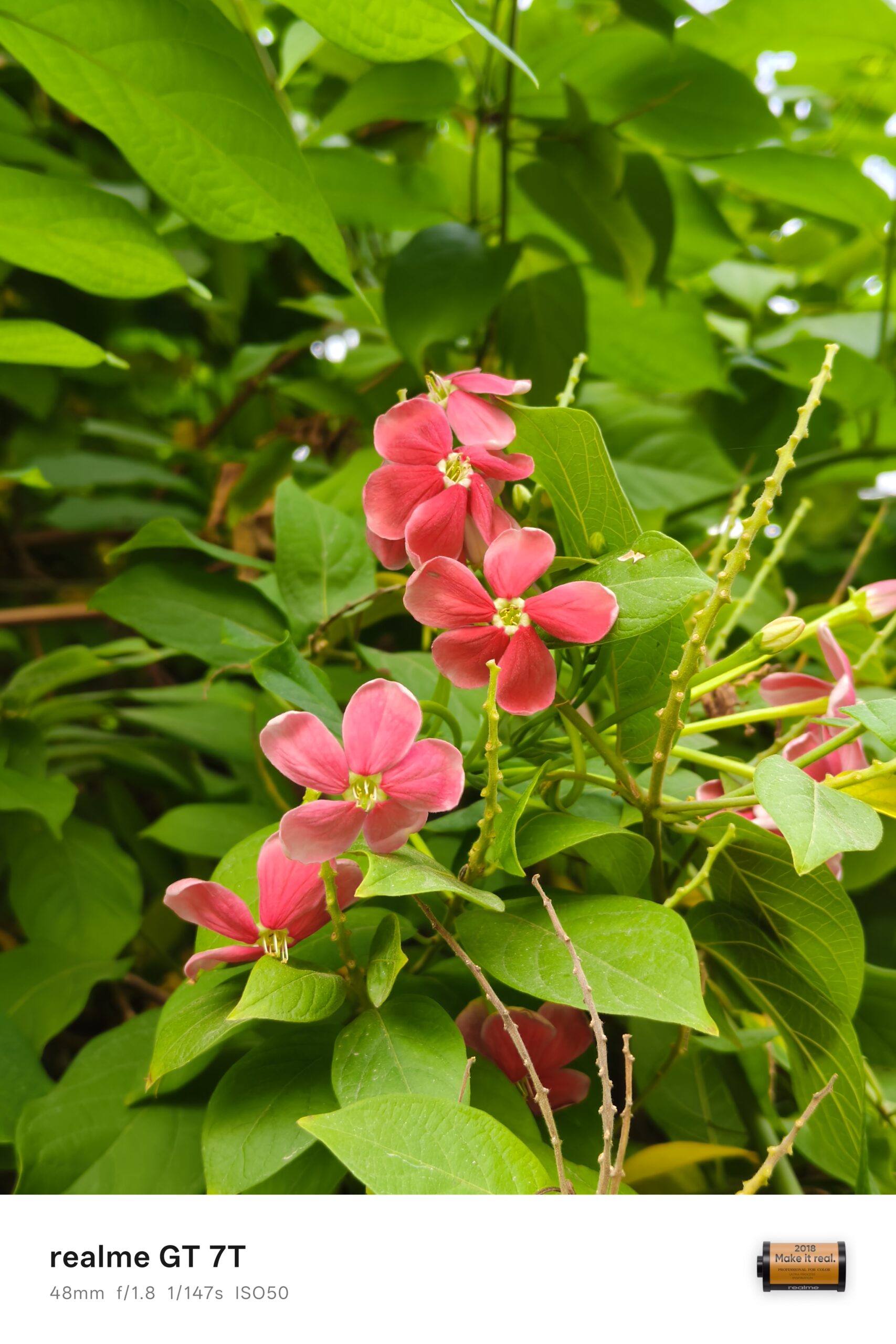 The realme GT 7T has a triple camera setup on the back, though it’s a bit pared down compared to the GT 7.