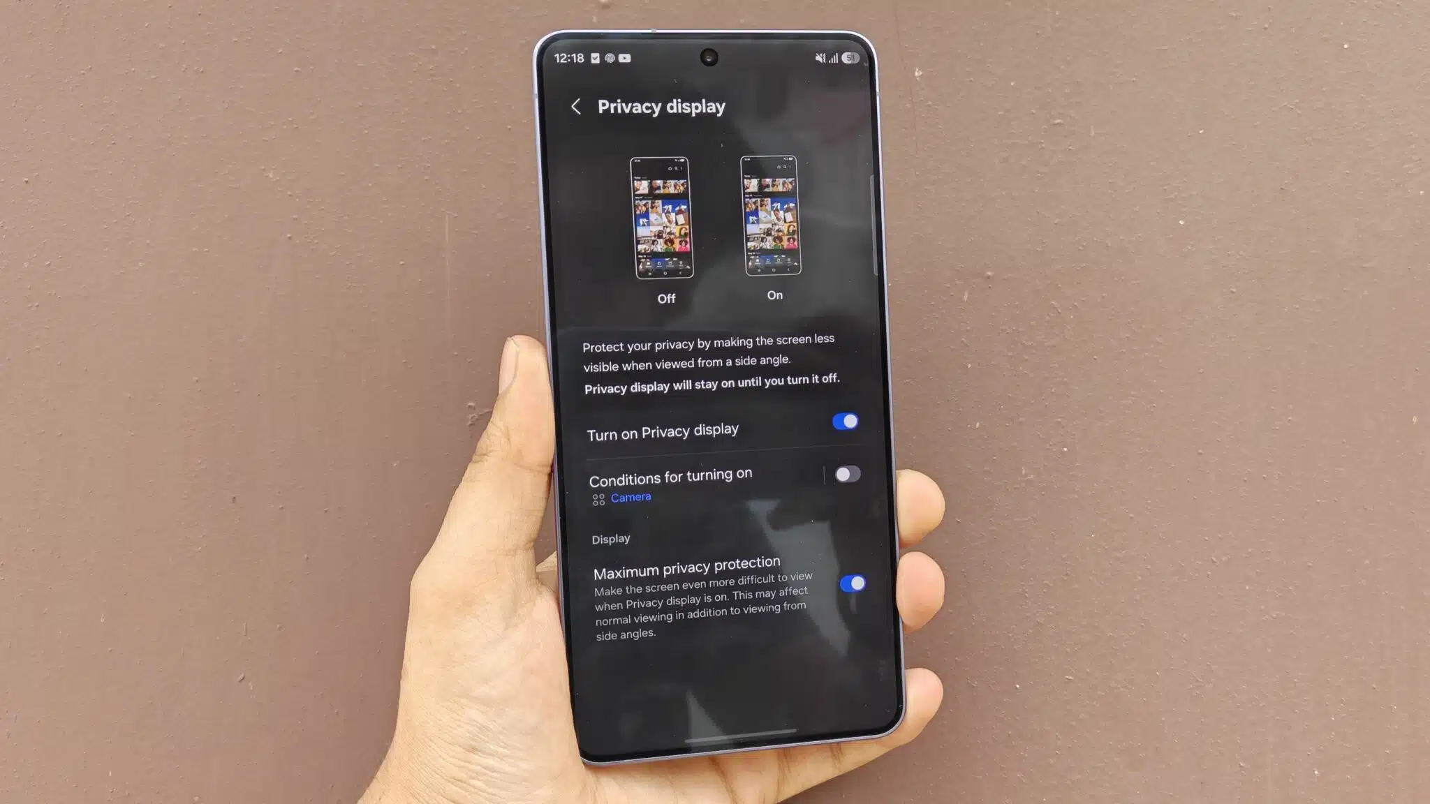 The screen has grown slightly to 6.9 inches. It is a massive, beautiful panel with a QHD+ resolution of 3120 x 1440. What truly sets this apart is the new Privacy Display feature powered by Flex Magic Pixel technology. While sitting in a crowded metro, I could turn this on to prevent people next to me from seeing my messages. It works by narrowing the viewing angle, so the screen looks dark from the side.